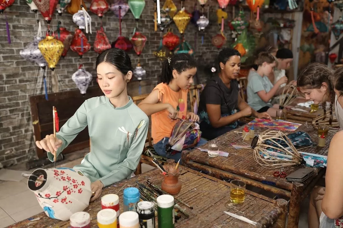 Tại khu vực đường Phan Châu Trinh và Nguyễn Duy Hiệu, rất nhiều xưởng làm đèn lồng luôn rộng cửa chào đón du khách. Từng khung tre được uốn cong, từng lớp vải lụa được dán cẩn thận để tạo thành những chiếc đèn đủ màu sắc, mang hình dáng cổ điển đặc trưng của Hội An. Khi chiếc đèn đầu tiên bạn tự tay làm ra được thắp sáng, cũng là lúc bạn cảm thấy kết nối thật sự với nhịp sống bình dị nơi đây.