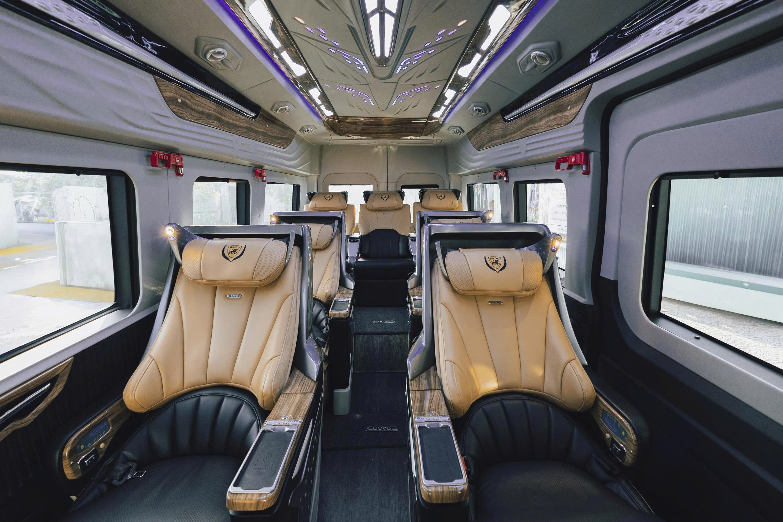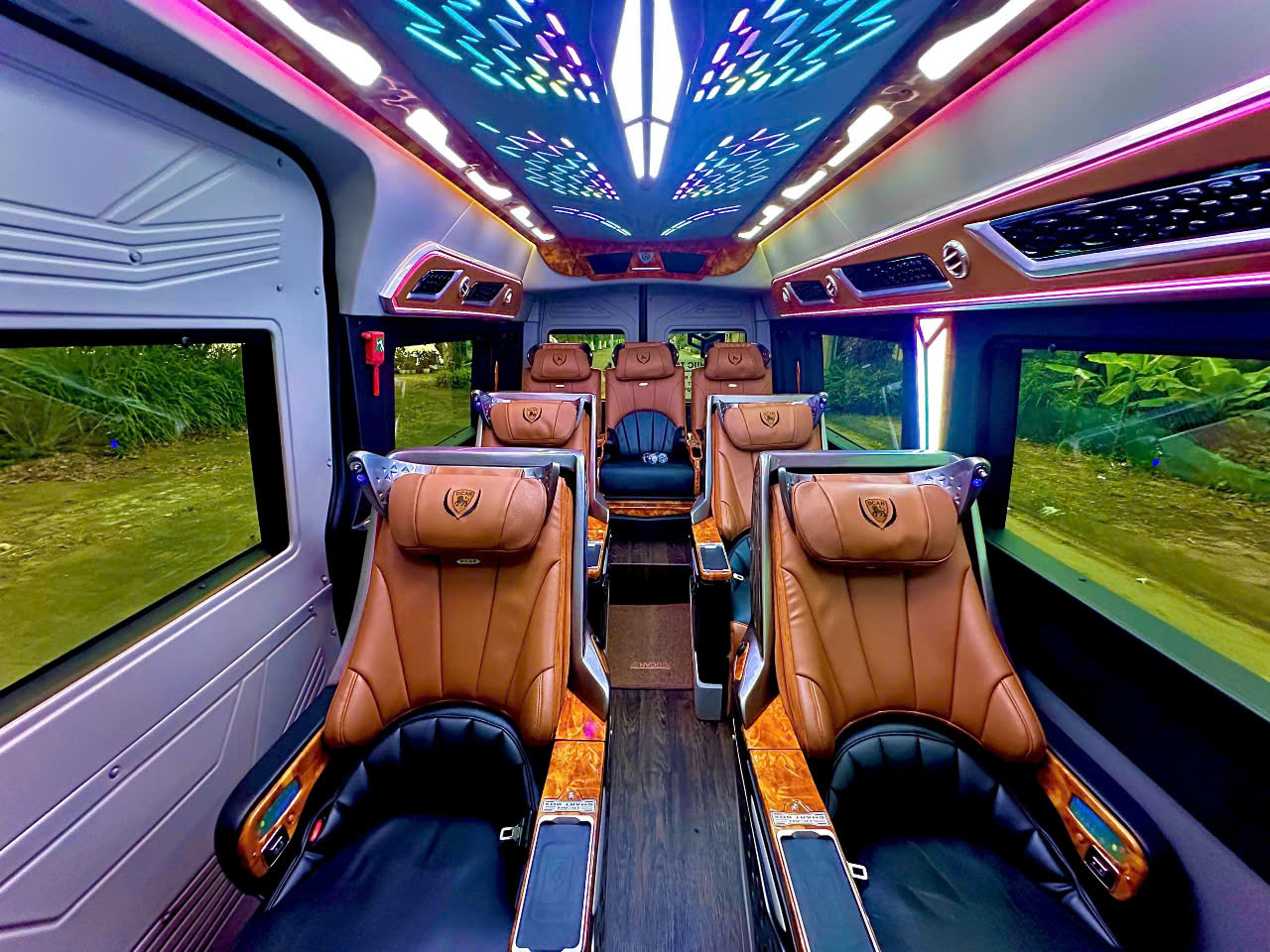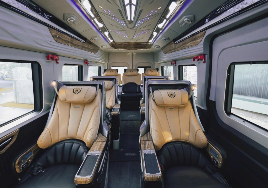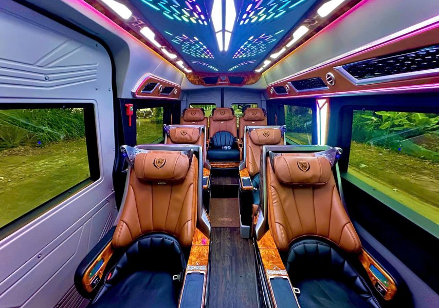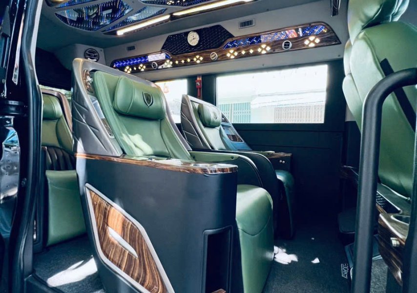 Với thiết kế nội thất cao cấp, xe limousine 9 chỗ nổi bật bởi hàng ghế bọc da êm ái, có thể ngả sâu thư giãn, cùng hệ thống đèn trần LED, màn hình giải trí, cổng sạc, tủ lạnh mini và nhiều tiện ích khác. Mỗi hành khách đều có không gian riêng, tách biệt và thoải mái như đang ngồi trên một khoang hạng thương gia. Đây là lý do vì sao loại xe này được rất nhiều khách VIP, doanh nhân và gia đình lựa chọn khi di chuyển dài ngày hoặc đi các tỉnh xa như Huế, Hội An, Bà Nà, Quảng Bình, hoặc đơn giản là đón tiễn sân bay.