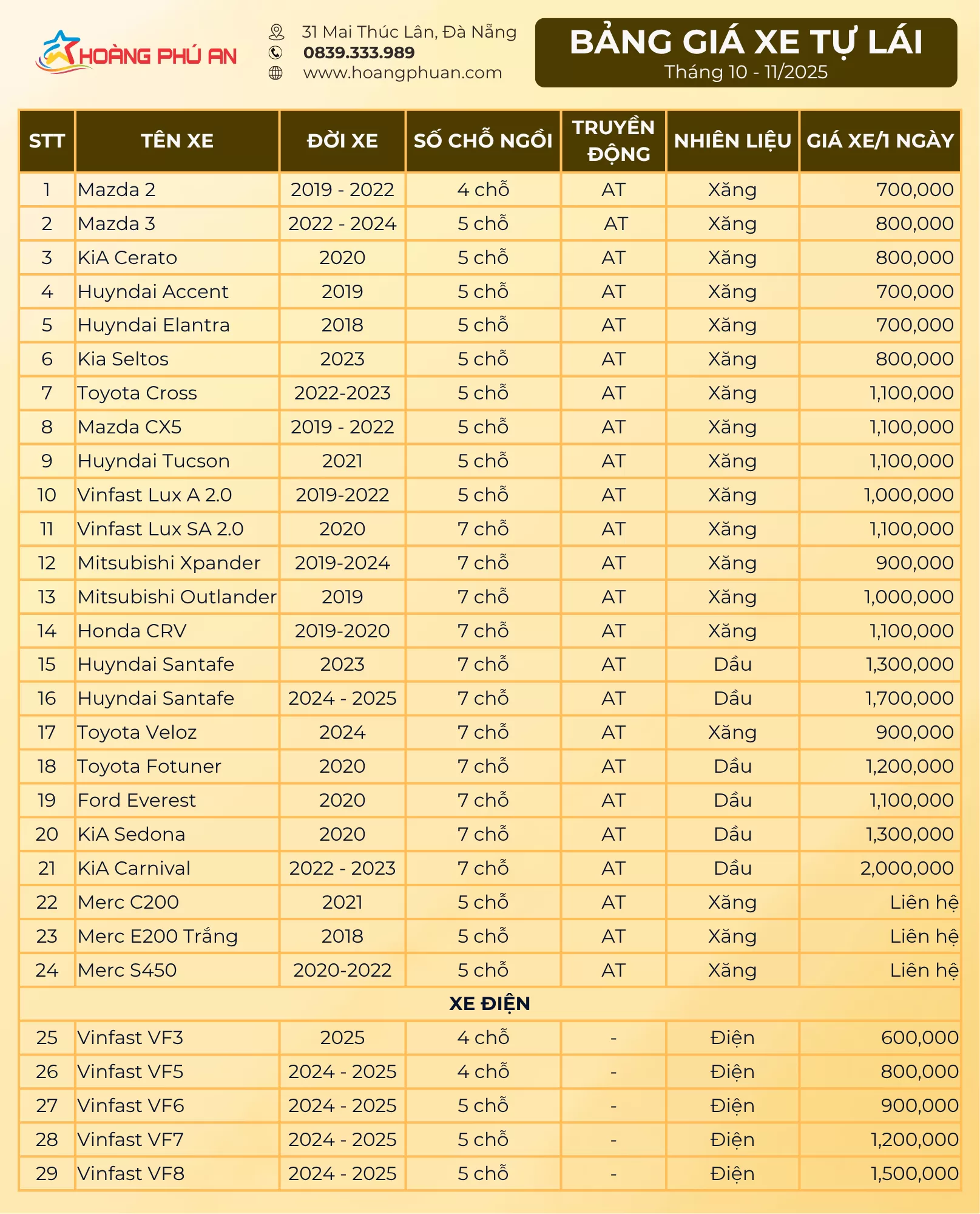 Liên hệ thuê xe tự lái Đà Nẵng – Hoàng Phú An